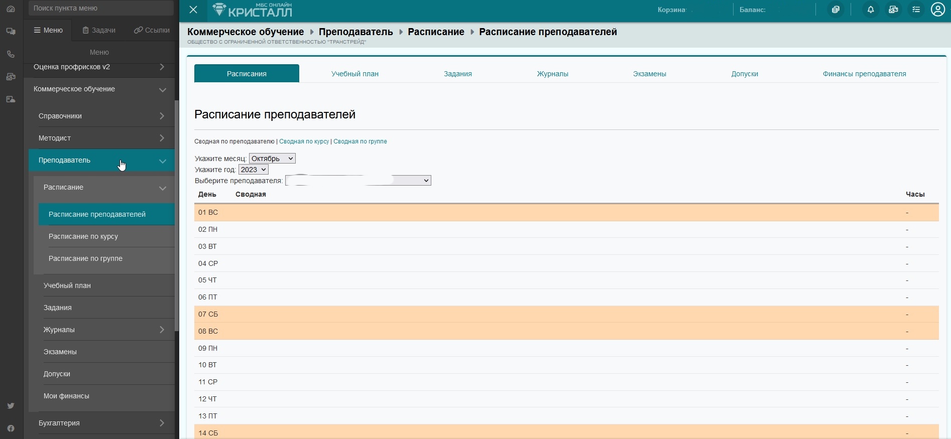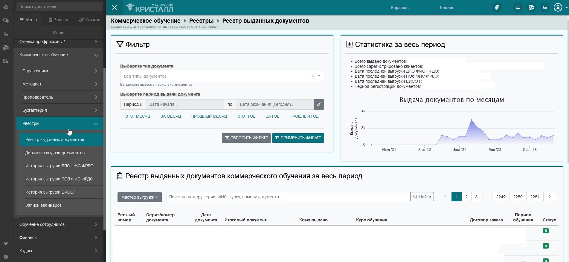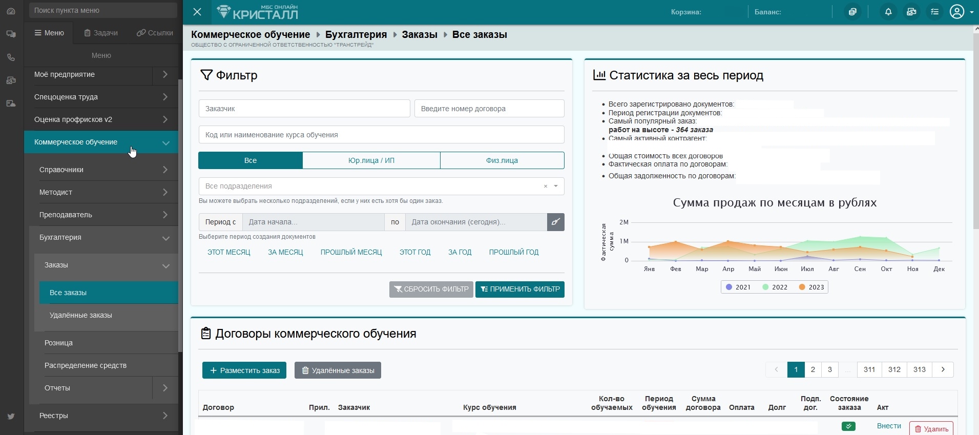 Модуль МБС «Кристалл» - «Коммерческое обучение»